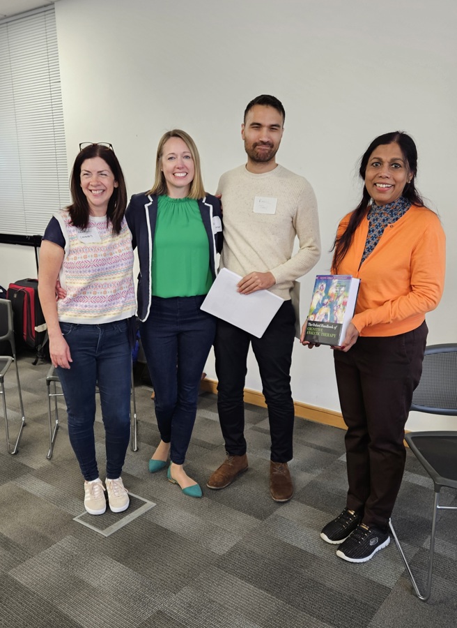 It was such a pleasure to attend this day, set up to celebrate the launch of what feels like a new “go to” reference book for CAT. There was a real buzz in the air as so many of us met in person after our new normal of many months of online meetings and events. This was highlighted by the three editors of the book telling us that this event was only the second time that they had actually met in person, despite a huge amount of work and liaison between them to get the book over the finish line. Ranil Tan started the presentations by illustrating the extensive mosaic of collaborations that were involved in getting contributions from 75 authors, plus additional input from experts by experience. The editors also spoke about their desire to include artwork that had been submitted for the book cover by therapists and clients and they showed some of the work through their talks.